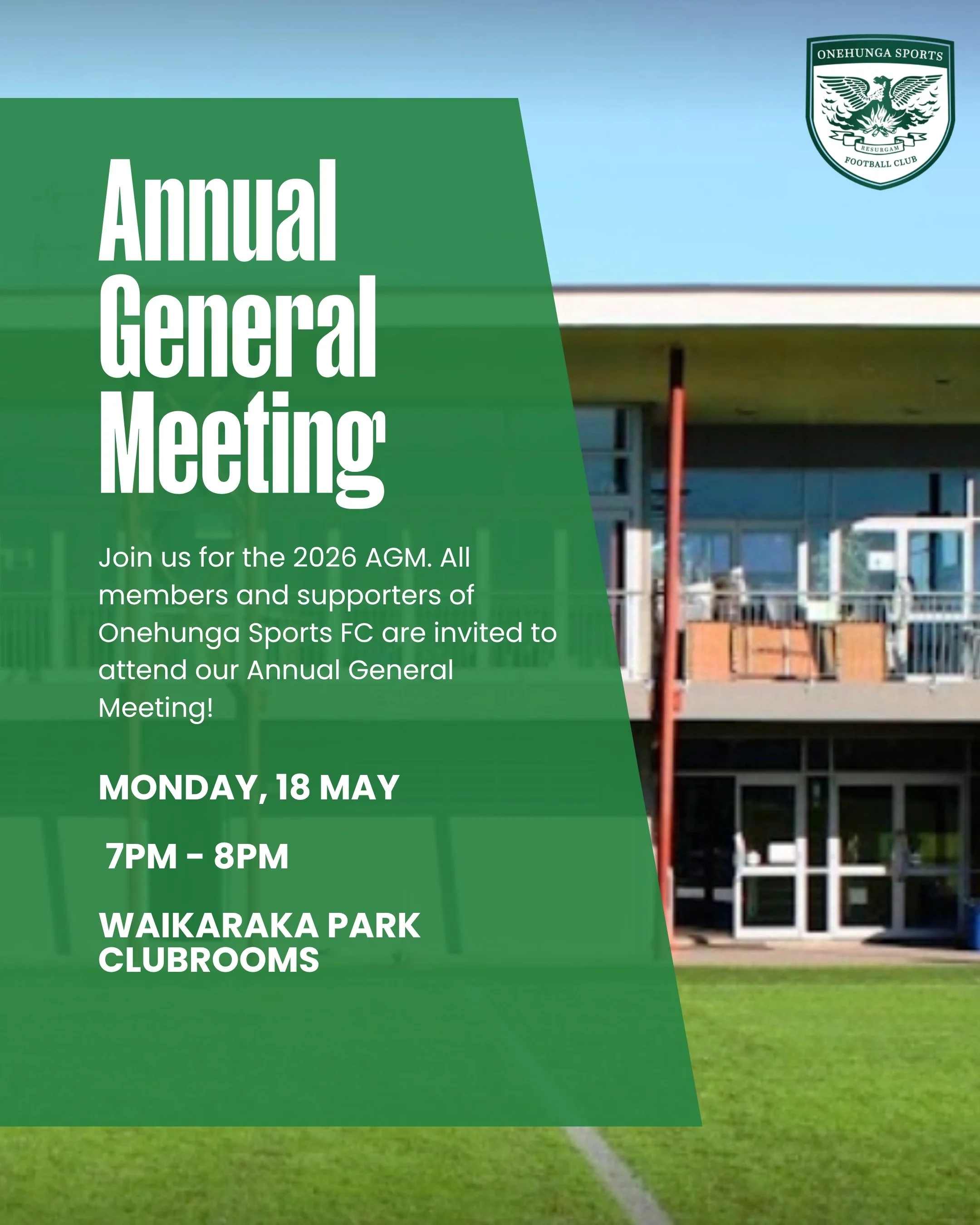 All members and supporters of Onehunga Sports FC are invited to attend our Annual General Meeting!