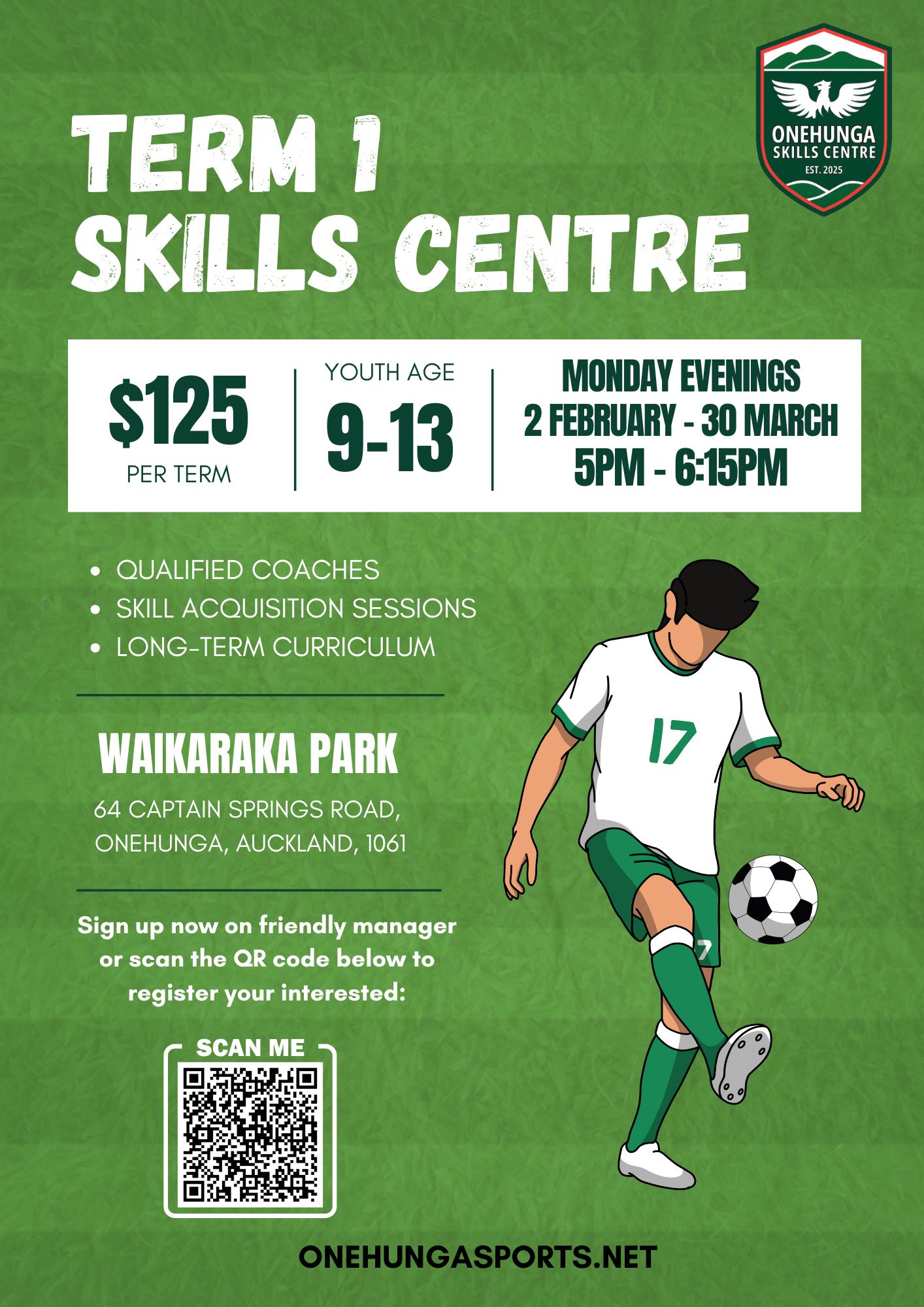 We’re proud to bring the Onehunga Skills Centre to players across the Onehunga and Māngere region. This programme is designed to provide top-level coaching and development opportunities close to home. In the near future, we’ll also be offering various hubs across Onehunga and Māngere to make training even more accessible.